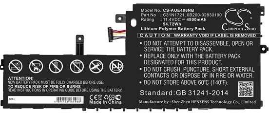 Cameron Sino Li-Polymer akku (11, 4V / 4800 mAh, Asus 0B200-02830100 kompatibilis) (CS-AUE406NB)