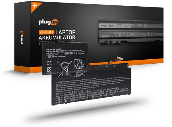 PlugOn saját márkás akkumulátor, kiváló A+ minőségű japán cellákkal, garantált megbízhatósággal és hosszú élettartam – AP16A4K 11.25V 3770mAh 38Wh új laptop akkumulátor. Gyárival megegyező minőség
