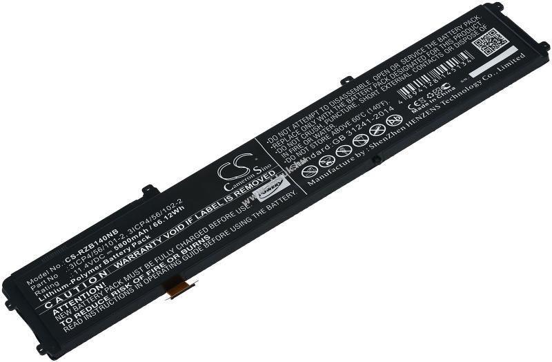 Feszültség: 11,4V - Teljesítmény: 5800mAh/66,1Wh - Típus: Li-Polymer - Méret: 340,80mm x 74,60mm x 8,50mm