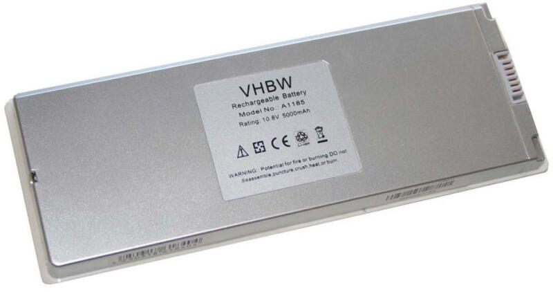 VHBW Notebook akkumulátor Apple MA561G/A, MA561FE/A, A1185 - 5000 mAh 10, 8 V Li-polimer, fehér (777000067)