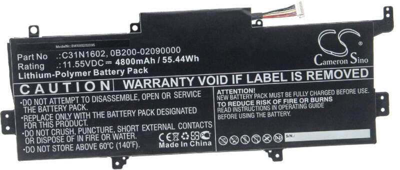VHBW Notebook akkumulátor Asus C31N1602, 0B200-02090000 - 4800 mAh 11, 55 V Li-polimer, fekete (888202095)