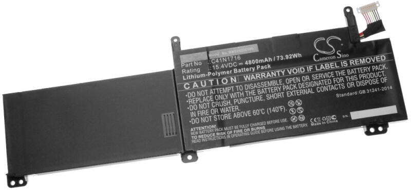 VHBW Notebook akkumulátor Asus C41N1716-hoz - 4800 mAh 15, 4 V Li-polimer, fekete (888200385)